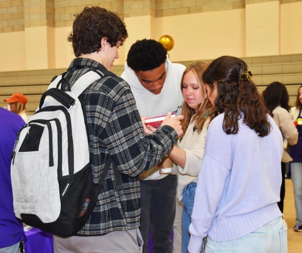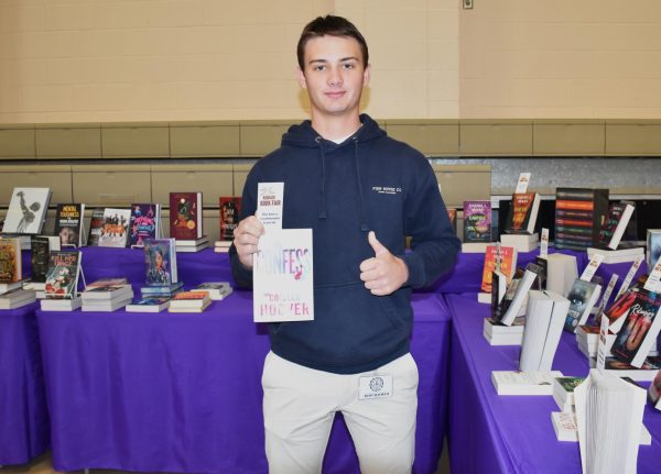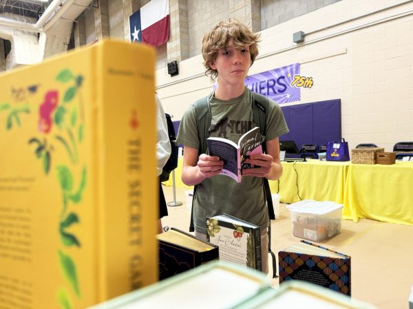 Sophomore John Rosser recommends the book “Confess by Colleen Hoover.” This book, among many others in its genre, was available for purchase at Kinkaid’s 2025 Book Fair. “I liked the look of the cover, but I probably wouldn’t purchase this book,” Rosser said. (Isabella Petree)Seniors Drace Gomez, Ethan Williams, Laine Wise, and Riley Purdy lean in to read the blurb of “Diary of a Wimpy Kid: Partypooper” by Jeff Kinney. Students can come together in a moment of connection and curiosity at the Book Fair through the love for reading. (Isabella Petree)Freshman Jack James reads “Animal Farm” by George Orwell before thinking about buying it. “I liked the super inspirational assembly from the author,” James said. (Isabella Petree)Sophomores Morgan Aron and Paulie Young look around the young adult section during Book Fair. This was a very popular section among the Upper School Class. (Isabella Petree)Seniors Drace Gomez and Gray Davis browse the book fair catalog. “One of the things that draws me to books when at the book fair is an interesting title. I think an interesting title makes me want to learn more about the book,” Gomez said.